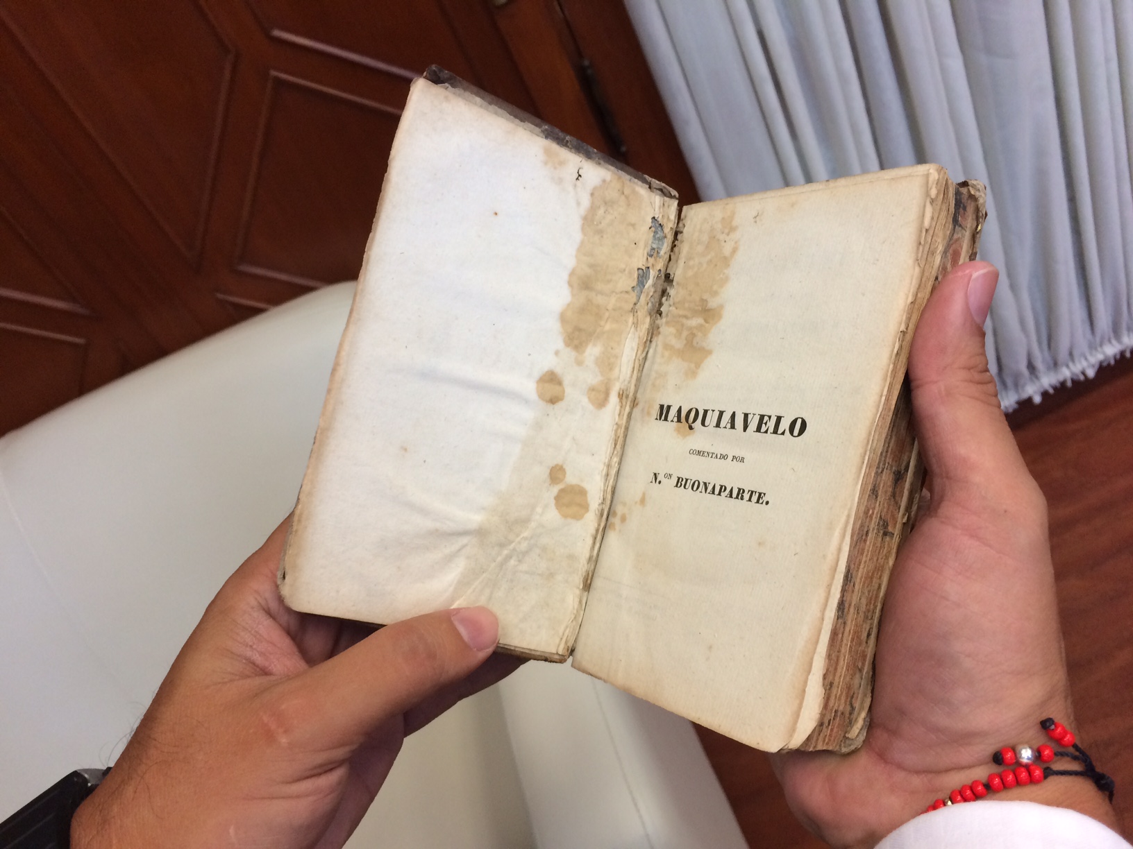 Alberto Silva Ramos, quien fue presidente municipal de Tuxpan, y que hoy es coordinador de Comunicación Social del Gobierno de Veracruz, me mostró hace unos días los dos volúmenes en piel de El príncipe de Maquiavelo, comentado por Napoleón Bonaparte, en una edición de 1827 impreso por la Librería F. Rosa. Los tomé en mis manos como si se tratará de dos cachorros recién nacidos. Abrí el primer tomo y cuando vi la fecha de 1827, seis años después de la muerte de Bonaparte, sentí un gran estremecimiento, por lo que con respeto deposité el volumen en su cofre.
