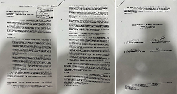 Los propietarios y representantes Efraín Malpica Montero, Margarita Díaz González, Domitila Hernández Marín, Mario Herrera Uscanga, Brígida Dionisio de Alemán y Rosendo Morales Hernández, han presentado documentación oficial que prueba la legalidad de los terrenos y piden que se tomen medidas inmediatas para desalojar a los invasores.