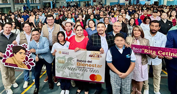La Secretaría de Educación (SEV) y la Coordinación Nacional de Becas para el Bienestar entregaron mil 470 tarjetas de la nueva beca Rita Cetina a estudiantes de la Escuela Secundaria General No. 5 Manuel R. Gutiérrez, de este municipio.