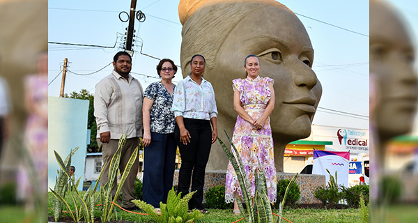 Yaocíhuatl es una obra autoría del escultor Luis Rea y “es un homenaje a la lucha de miles y miles de mujeres a lo largo de nuestra historia como pueblo, es una escultura que simboliza la presencia y el poder de la mujer en el pasado, el presente y el futuro”, expresó la munícipe.