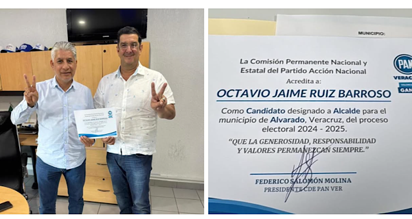 El PAN estatal de Veracruz hizo entrega a Tavo Ruiz de la constancia partidista que lo acredita como su candidato a la alcaldía de Alvarado.