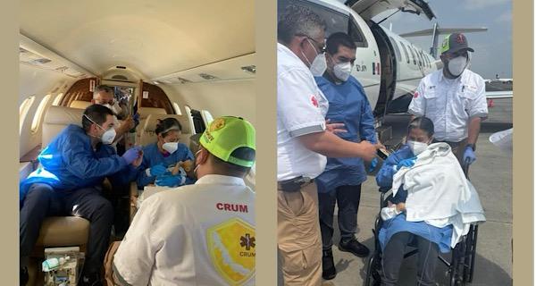 Durante el vuelo, el paciente pediátrico fue acompañado por su madre, personal médico del CRUM y un especialista de la UMAE No. 14, quienes garantizaron en todo momento su estabilidad y seguridad.
