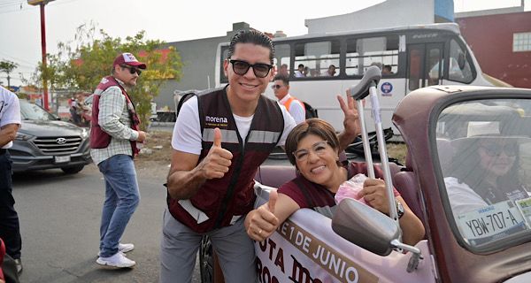 A bordo del “Vocho Móvil” y con muletas, la candidata fue recibida con mucho cariño y aceptación por parte de los ciudadanos, quienes además de cantarle Las Mañanitas a su llegada, se acercaron para estrechar su mano y garantizarle su respaldo en las urnas, este próximo 1 de junio.