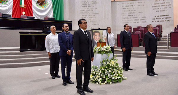 En el Recinto Oficial de Sesiones del Palacio Legislativo, ante las cenizas del exmandatario, su hijo Javier Herrera Borunda, agradeció al presidente de la Junta de Coordinación Política (Jucopo) de la LXVII Legislatura de este Congreso, diputado Esteban Bautista Hernández, y a la gobernadora de Veracruz, Rocío Nahle García, su sensibilidad y generosidad por brindar las facilidades para llevar a cabo este homenaje.