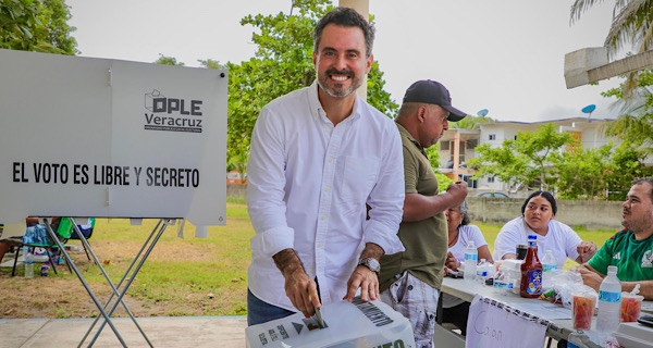 Alvarado: Polo Deschamps, candidato de Morena a la alcaldía de Alvarado, emitió su voto esta mañana en compañía de su esposa Luli y de sus hijos. Ahí hizo un llamado a la participación ciudadana en esta elección.