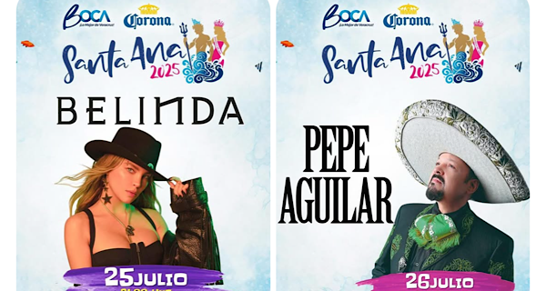 Belinda y Pepe Aguilar encabezan el cartel de las fiestas de Santa Ana, próximas a realizarse del 25 al 28 de julio en el municipio de Boca del Río.