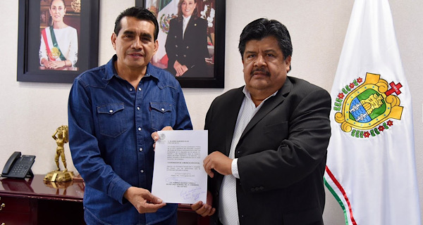El presidente de la Junta de Coordinación Política (Jucopo) de la LXVII Legislatura, diputado Esteban Bautista Hernández, entregó al comunicador Silverio Quevedo Elox el nombramiento que lo acredita como titular de la Coordinación de Comunicación Social del Congreso del Estado de Veracruz.