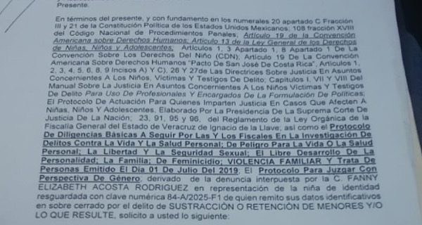 La madre presentó una denuncia por sustracción y retención de menores, con el folio 1221/2025, por la que emplazaron al abuelo y al papá presentar este martes 26 de agosto a la menor, sin embargo, no acudieron a la reunión con la Procuradora del menor.