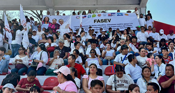 Maestras y maestros de diversos sindicatos, acompañaron a la secretaria Claudia Tello Espinosa, quienes al lado de más de 31 mil veracruzanos, reconocieron el trabajo de los gobiernos federal y estatal de la Cuarta Transformación.