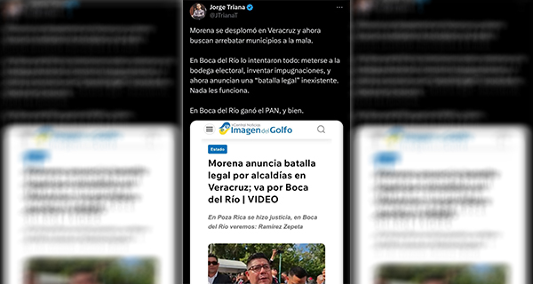 El vocero nacional del PAN, Jorge Triana Trena, a través de su cuenta de X, respondió a las declaraciones de la dirigencia estatal de Morena en Veracruz, quien anunció una «batalla legal» por la alcaldía de Boca del Río.