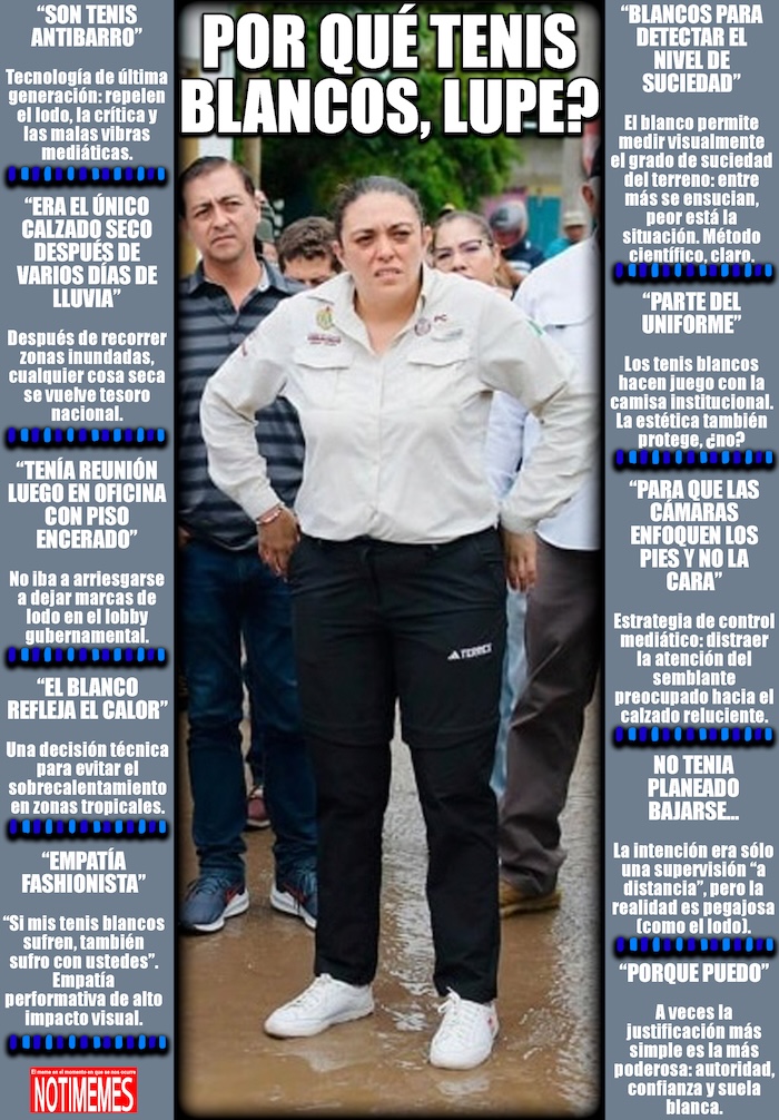 LOS TENIS DE LUPE! Lo viste en Los Políticos 12 octubre, 2025 Notimeme del Dia Comparte esto: Haz clic para compartir en Facebook (Se abre en una ventana nueva) Facebook Haz clic para compartir en X (Se abre en una ventana nueva) X