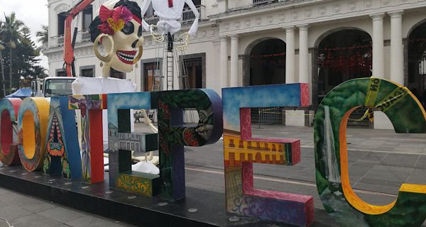 Este jueves, en el parque Miguel Hidalgo del municipio de Coatepec comenzó la instalación de las Catrinas Monumentales.