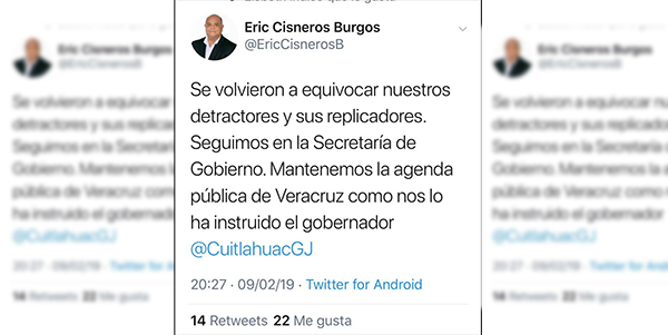 Después del show del viernes en el Congreso en el que las cuentas no salían y los números no cuadraban, corrió el rumor de que Eric Patrocinio Cisneros renunciaba a la Secretaría de Gobierno y que en su lugar llegaría Elías Miguel Moreno Brizuela, ¡pues que nos vamos como bólido por la banda! cual bola blanca impulsada por un taco, detrás de la exclusiva hasta Casa Veracruz.