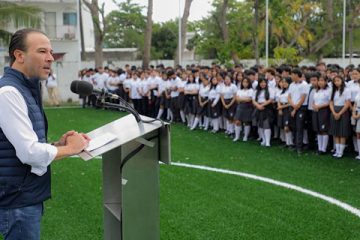 El Presidente Municipal de Boca del Río, Juan Manuel Unánue Abascal, inauguró la nueva cancha de fútbol con pasto sintético en el Centro de Bachillerato Tecnológico Industrial y de Servicios (CBTIS...