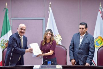 En representación de la LXVII Legislatura, la Mesa Directiva, presidida por la diputada Naomi Edith Gómez Santos, y el presidente de la Junta de Coordinación Política (Jucopo), diputado Esteban Bautista Hernán...