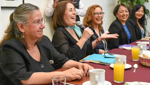 Tras exponer los principales puntos de sus propuestas, July Sheridan tuvo un diálogo abierto con las integrantes de Veloa, periodistas y asistentes al encuentro celebrado en la capital veracruzana.